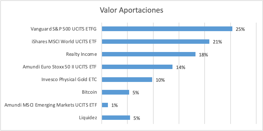 - 5 ETFs diversificados geográficamente y por tipo de activo. La estrategia que voy a seguir es Buy & Hold (gestión pasiva).